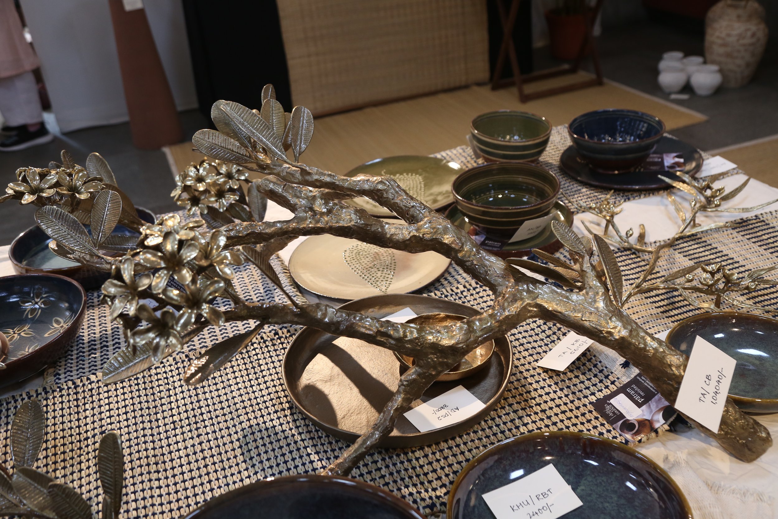 An exhibition of tableware in earthenware, metal, fibre, glazed pottery, textiles, wood, stone.